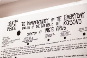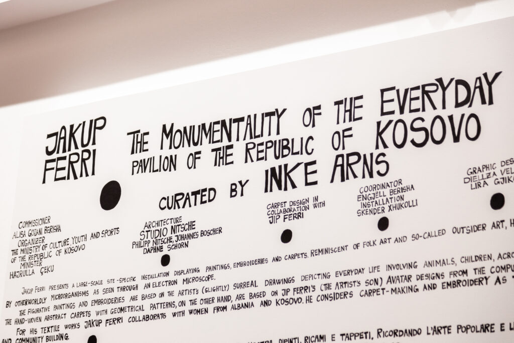 • THE MONUMENTALITY OF THE EVERYDAY • JAKUP FERRI • CURATED BY INKE ARNS • LA BIENNALE DI VENEZIA • PAVILION OF THE REPUBLIC OF KOSOVO • 23 APRIL – 27 NOVEMBER 2022 • COMMISSIONED BY ALISA GOJANI-BERISHA • ORGANISED BY THE MINISTRY OF CULTURE, YOUTH AND SPORTS OF THE REPUBLIC OF KOSOVO